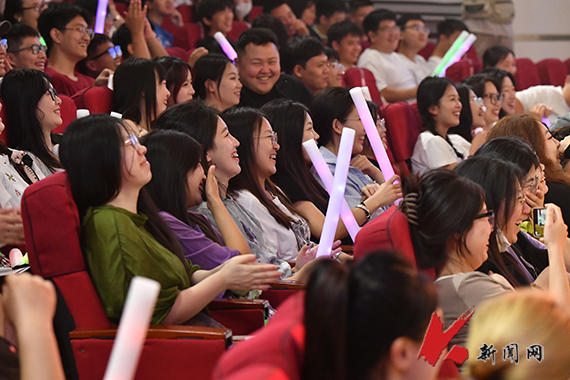 展演以“闪耀”为主题,寓意2024届毕业生在即将开启的人生新征程中精彩绽放,闪耀光华。展演分为“岁月如歌”“流年似锦”“溯光而行”三个篇章,伴随2024届毕业生追忆美好大学时光,感恩师长教诲陪伴,希冀未来鲲鹏万里。男声四重唱《友谊地久天长》柔美醇厚,街舞《We are together》律动热烈,歌曲《昨日青空》清澈婉转。经法学院教师温馨、招生与就业处教师王旭等带来歌曲《小美满》,为毕业生送上最真挚的祝福。舞蹈《上春山》让人仿佛穿越一般,置身满园春色的德甲电子·(中国)网站校园。极具戏曲特色的创意表演《沧海一声笑》,加之校工会教师鲁焱、国有资产管理处教师周建国的书法寄语“前程似锦”“未来可期”,展现了中华传统文化的魅力。感人至深的歌曲《父亲》,唱出了父爱的伟大与深沉。外语学院芳华合唱团、艺术学院筑梦合唱团一曲《海阔天空》宽广嘹亮,振奋人心。相声《大风车》、小品《时间都去哪了》“热梗”和金句不断,掌声呐喊声此起彼伏。